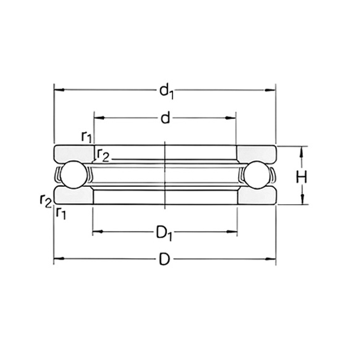轴承型号 其他保持架 d D H 动态 C 静态 Co 参考转速 极限转速 d1<.sub> D1 r1,2<.sub> 最小 da<.sub> 最小 Da 最大 ra<.sub> 最大